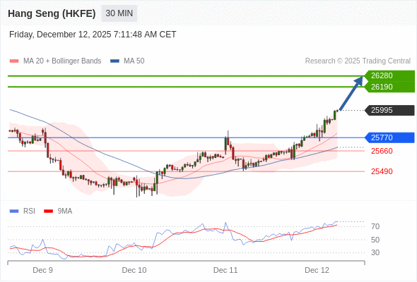 在 25770 之上,看涨,目标价位为 26190 ,然后为 26280 。