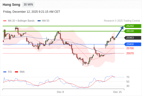 在 25800 之上,看涨,目标价位为 26130 ,然后为 26260 。