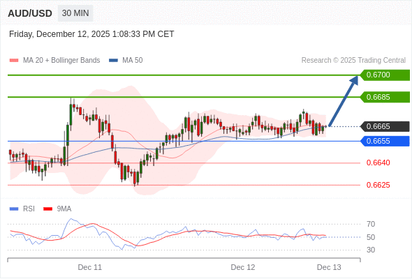在 0.6655 之上,看涨,目标价位为 0.6685 ,然后为 0.6700 。