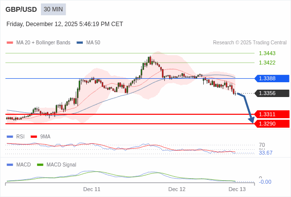 英镑/美元 当日内 : 看跌,在 1.3388 之下。