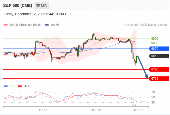 在 6870 之下,看跌,目标价位为 6790 ,然后为 6755 。