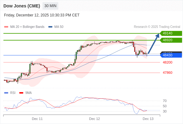 在 48430 之上,看涨,目标价位为 48920 ,然后为 49140 。