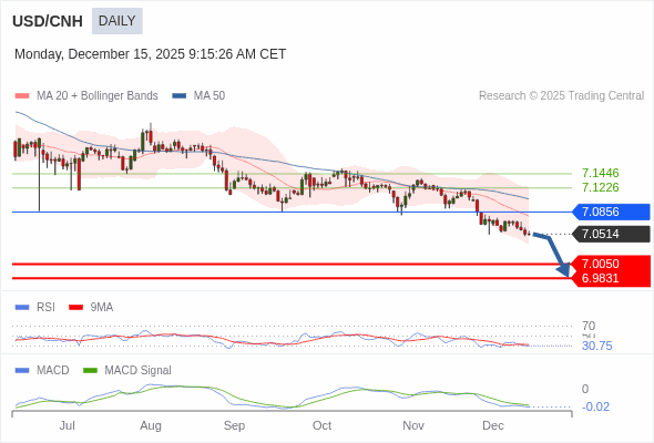 美元/人民币 短线 : 看跌,在 7.0856 之下。