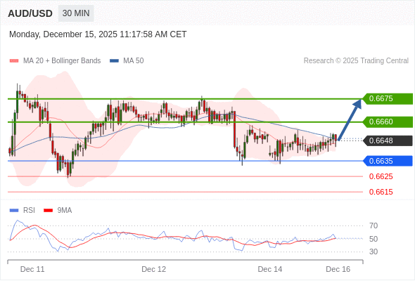 在 0.6635 之上,看涨,目标价位为 0.6660 ,然后为 0.6675 。