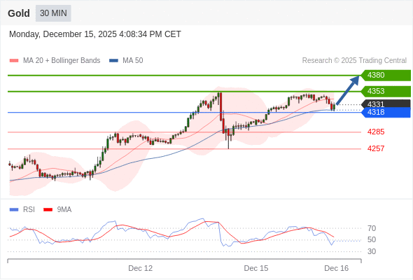 在 4318 之上,看涨,目标价位为 4353 ,然后为 4380 。