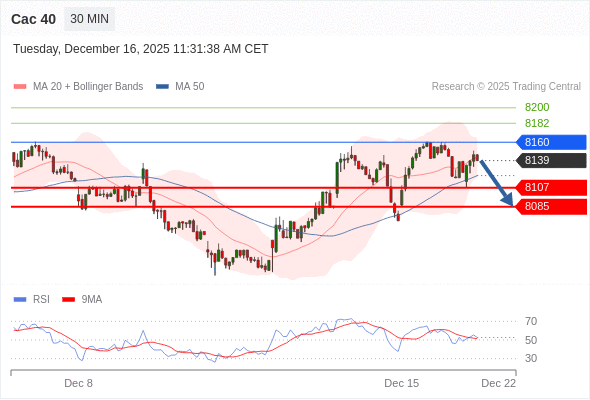 在 8160 之下,看跌,目标价位为 8107 ,然后为 8085 。