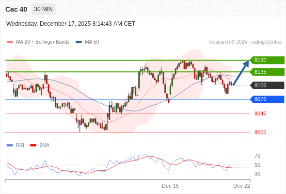Cac 40 当日内: 超短线(当日内)支撑位在8076附近。