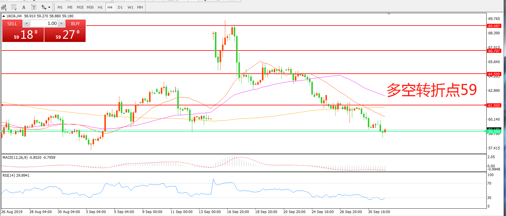交易策略:在59.00之下看跌,目标57.00 55.00