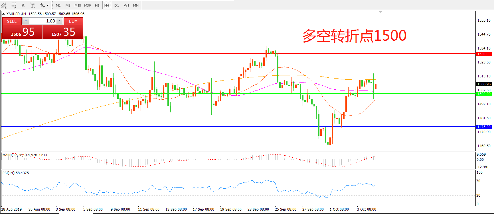 上周,中美谈判可能取得进展的希望提振了美股,打击了市场中的避险情绪,金价一度创下8月6日以来新低至1459美元/盎司,但随着新一波美国经济数据不尽如人意,全球经济放缓担忧卷土重来,金价围绕千五关口进行争夺,最终收报1507.33美元/盎司,非农结果喜忧参半,市场预计美联储本月将会再度降息。