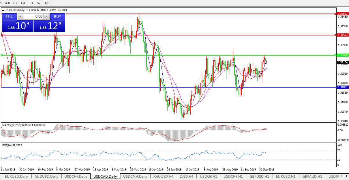 交易策略:在1.3345之下,看跌,目标价位为1.3180,然后为1.3000。