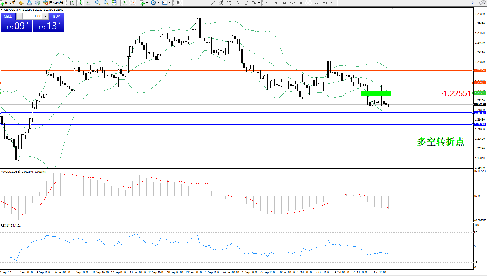 交易策略:1.22551下方看跌,目标1.21735、1.21248