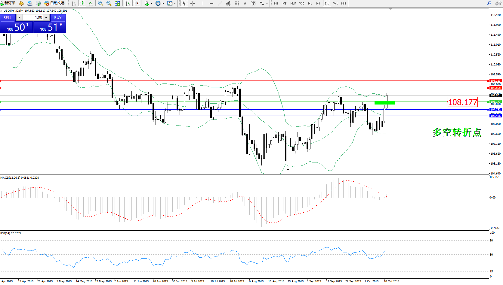 技术点评:低位强势多头急速拉升上扬,突破布林带指标上轨附近短暂受阻,高位压制依旧存在,但多头上行动力强劲,MACD指标纠结于0轴线附近持续徘徊,RSI指标突破50均衡线进入多头区域后不断拉升中;