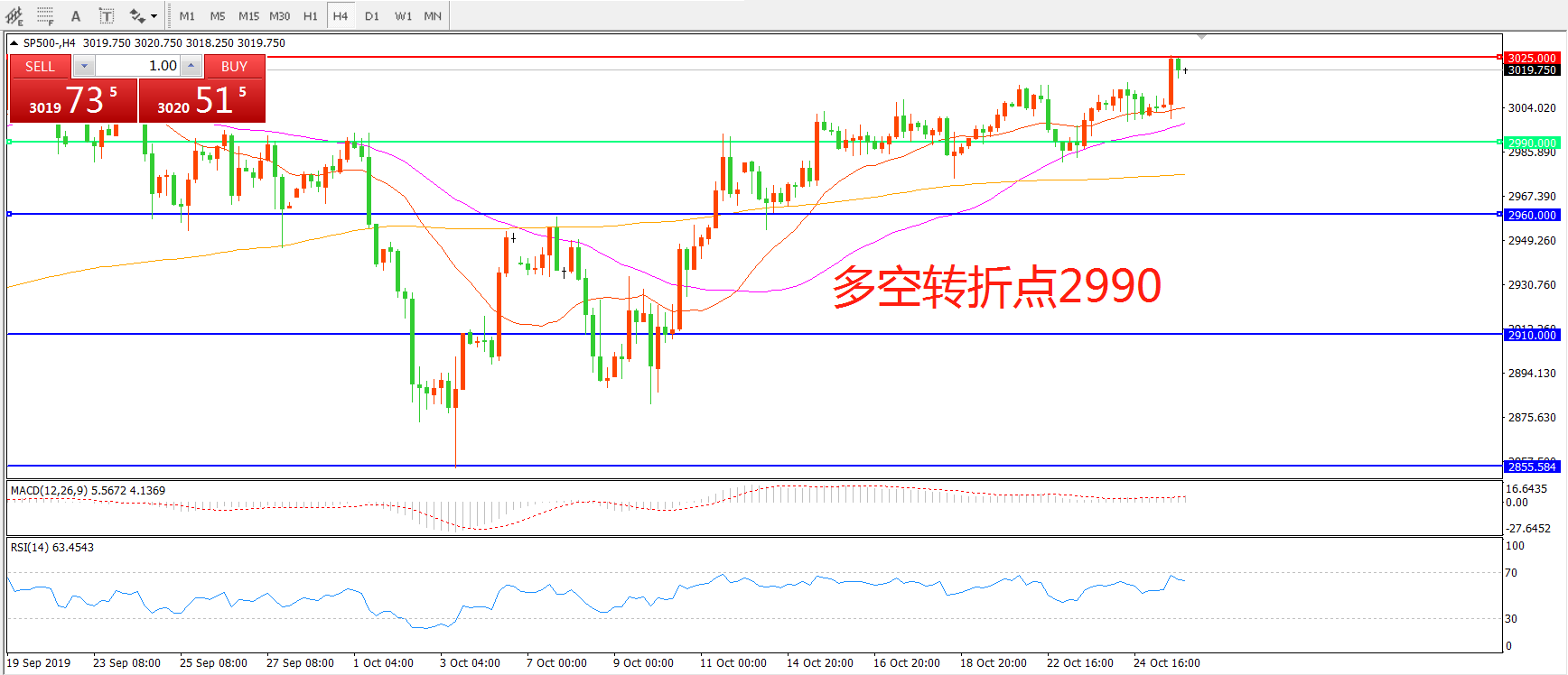 多空转折点:2990.00