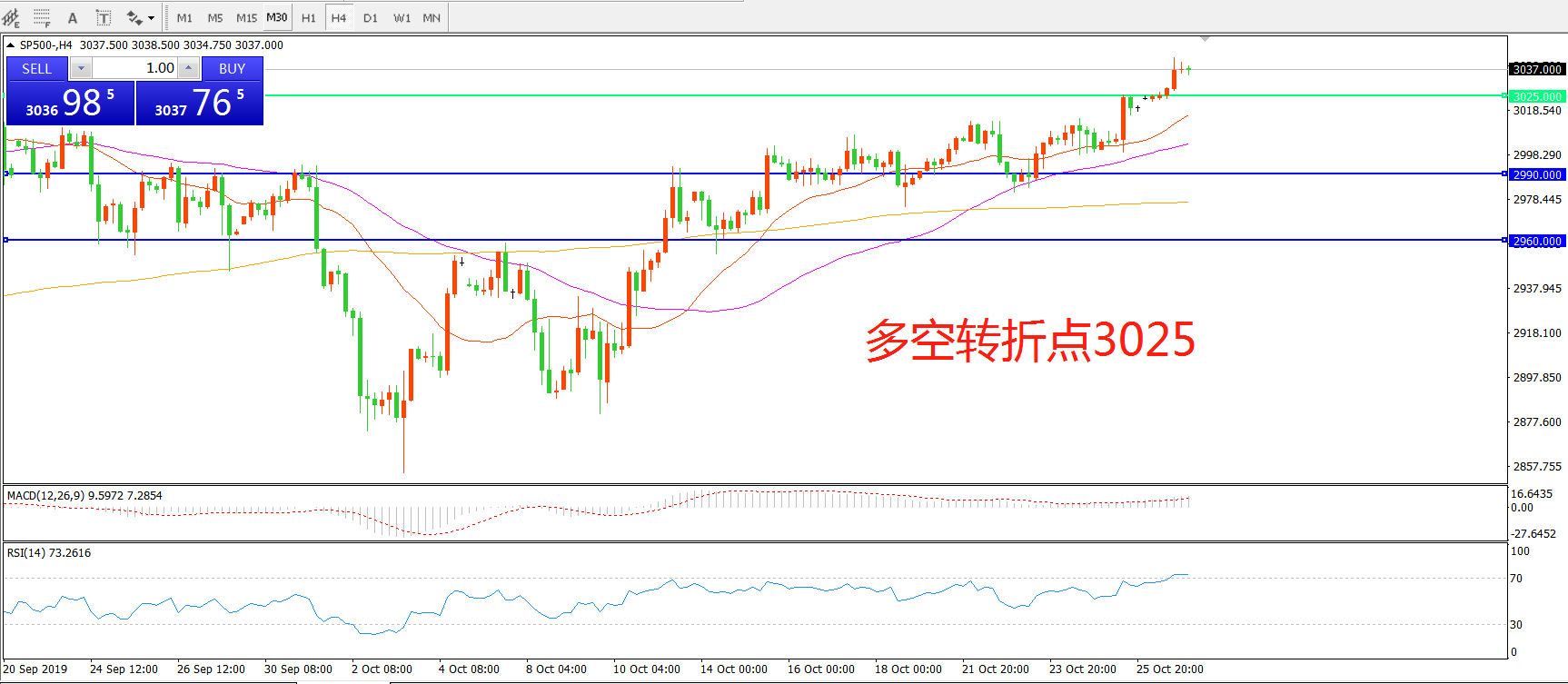 多空转折点:3025.00