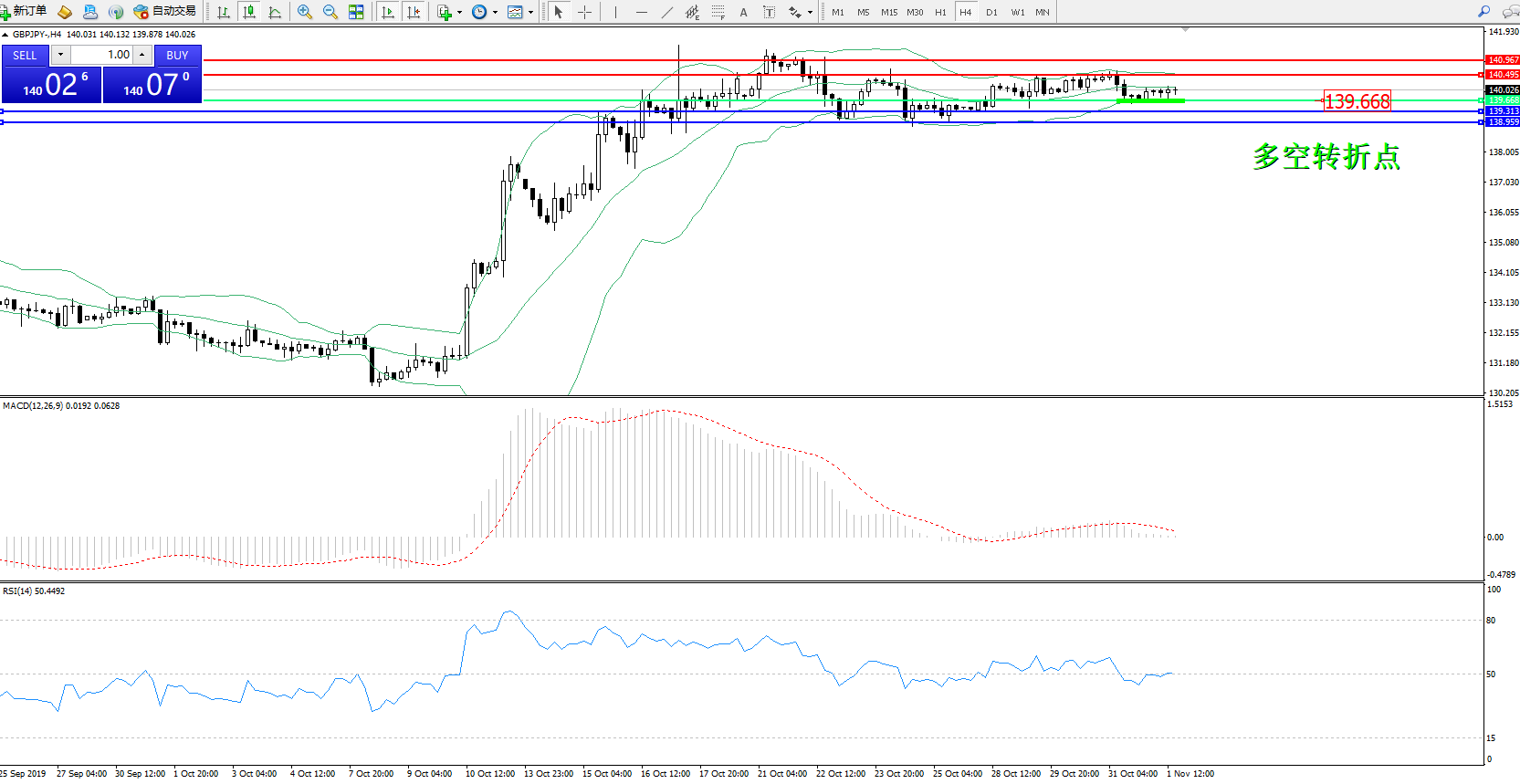 交易策略:139.668上方看涨,目标140.495140.967