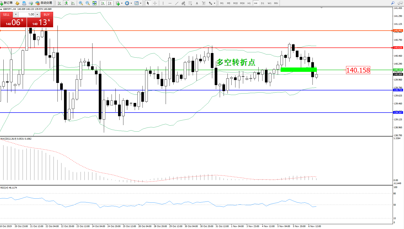 交易策略:140.158下方看跌,目标139.735139.267