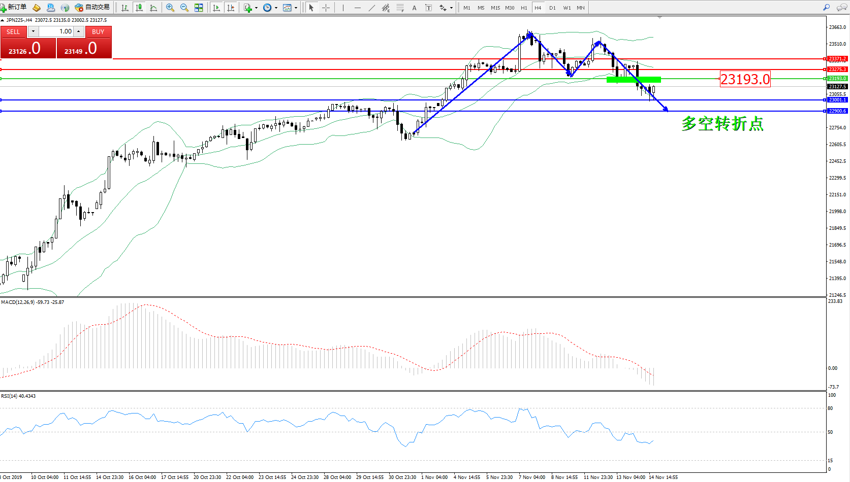 日经指数JPN225——4小时K线图: