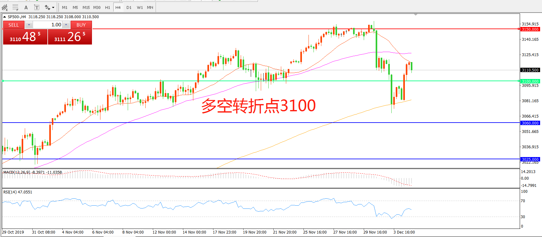 周三(12月5日)市场仍在密切关注全球商贸局势的进展,有关商贸协议仍在取得进展的报道提振了市场情绪,标普500,11个板块中有10个板块上涨,最终收报3110.48点。大型科技股涨跌不一,谷歌大涨近2%:苹果涨0.88%,亚马逊跌0.52%,中概股涨跌不一,阿里巴巴跌0.60%,京东跌1.47%,爱奇艺涨0.15%,36氪涨7.26%。值得注意的是美国11月ADP就业人数增加6.7万,刷新5月以来新低,如果周五非农表现不佳,美股反弹将受到明显遏制。