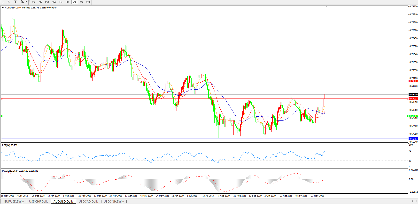 美元遭遇多仓解除打击,澳美飙升站上0.69关口