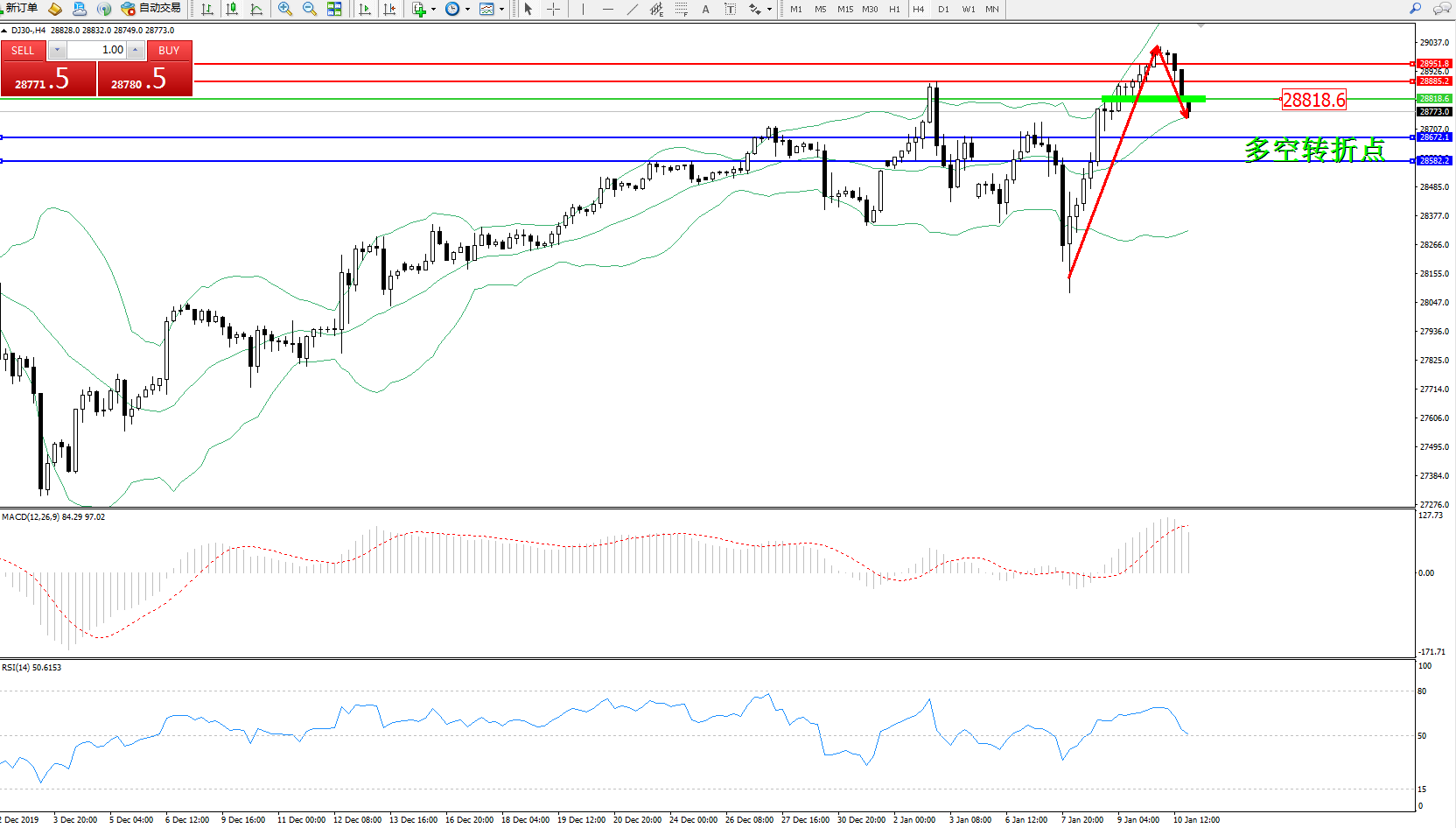 技术点评:多头动力处于高位布林带指标中上轨区间内侧震荡回撤中,正处于中轨附近节点,且布林带指标处于张口平移走势中,MACD指标处于多头区域高位开始回撤下移,RSI指标处于多头区域高位回撤至50均衡线附近徘徊;