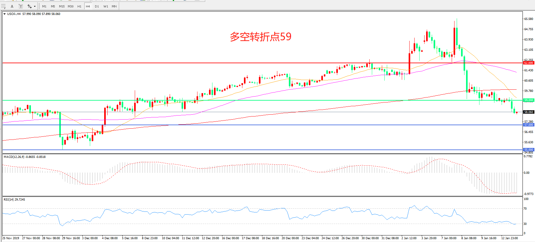 交易策略: 在59.00之下看跌,目标57.00 55.00