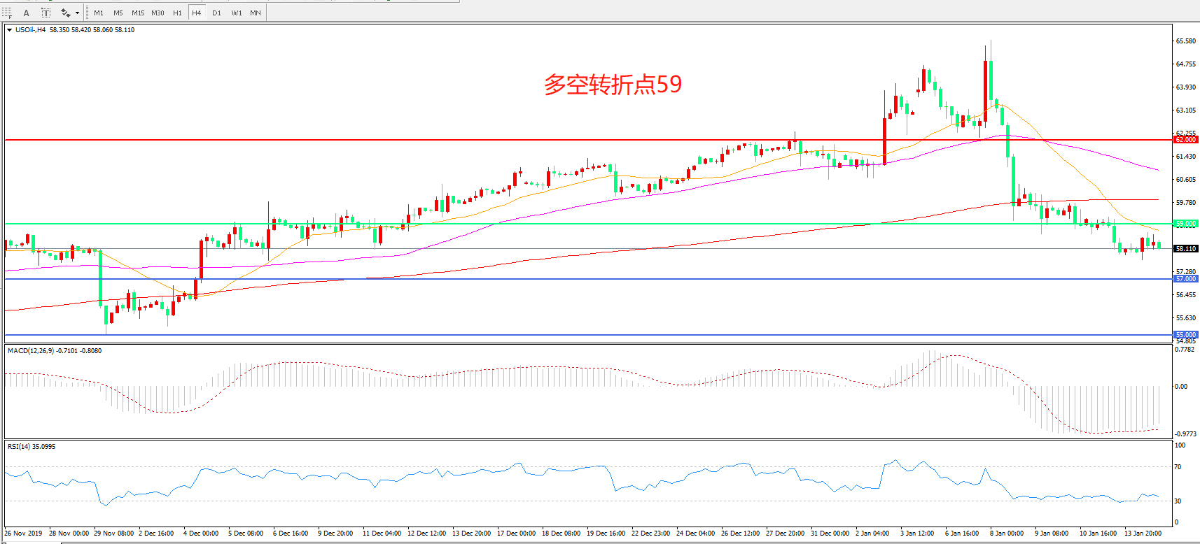 交易策略: 在59.00之下看跌,目标57.00 55.00