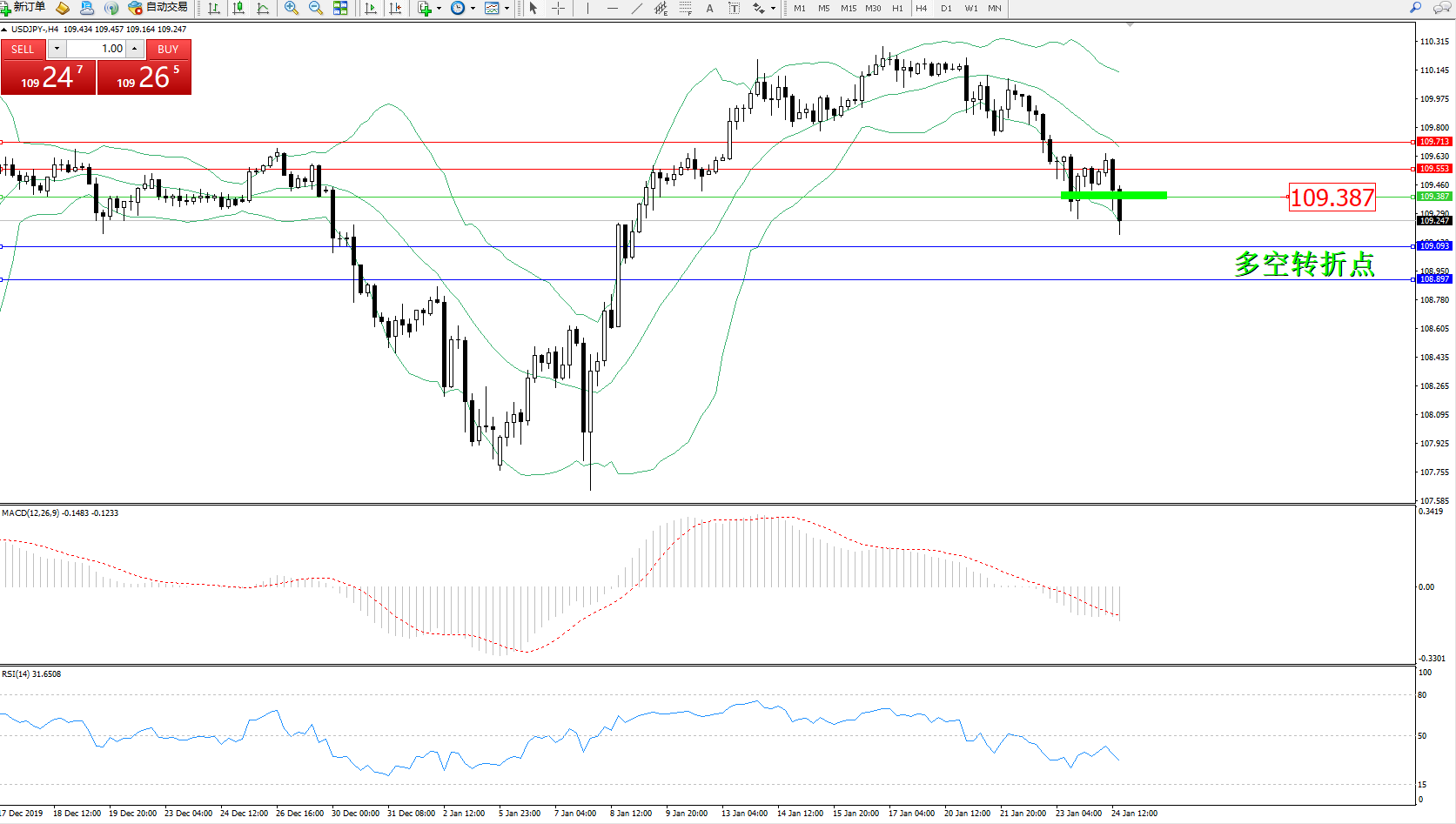 技术点评:高位空头动力不断弱势下探,有继续延续布林带指标下轨下行态势,且跌势未有止步迹象,下行趋势良好,MACD指标处于0轴线下方弱势整理下移中,RSI指标处于50均衡线下方空头区域持续震荡下行;