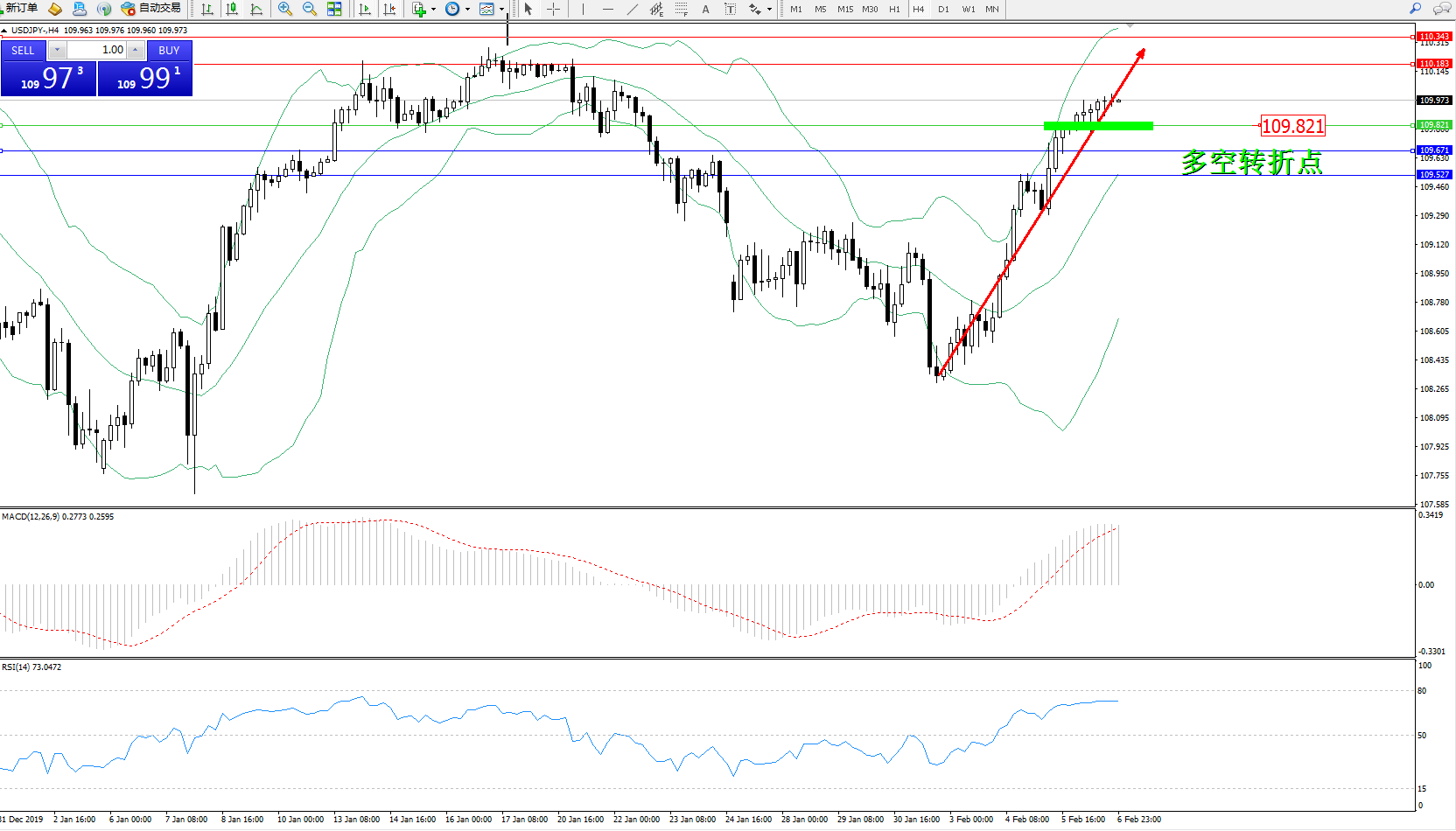 美元兑兑日元升至美元兑日元上涨0.15%109.99两周高位,因近期美国经济数据强劲,且对公共卫生事件的担忧有所缓解;美国1月份非农可能并不令人兴奋,但也不应该令人失望。美国1月份工资数据若意外乐观,可能会在一定程度上平息市场对美国第一季度GDP增速放缓的担忧,美联储降息的最小几率也可能下滑,这给美元兑日元突破109.70阻力区域,并接近110.30峰值创造机会。