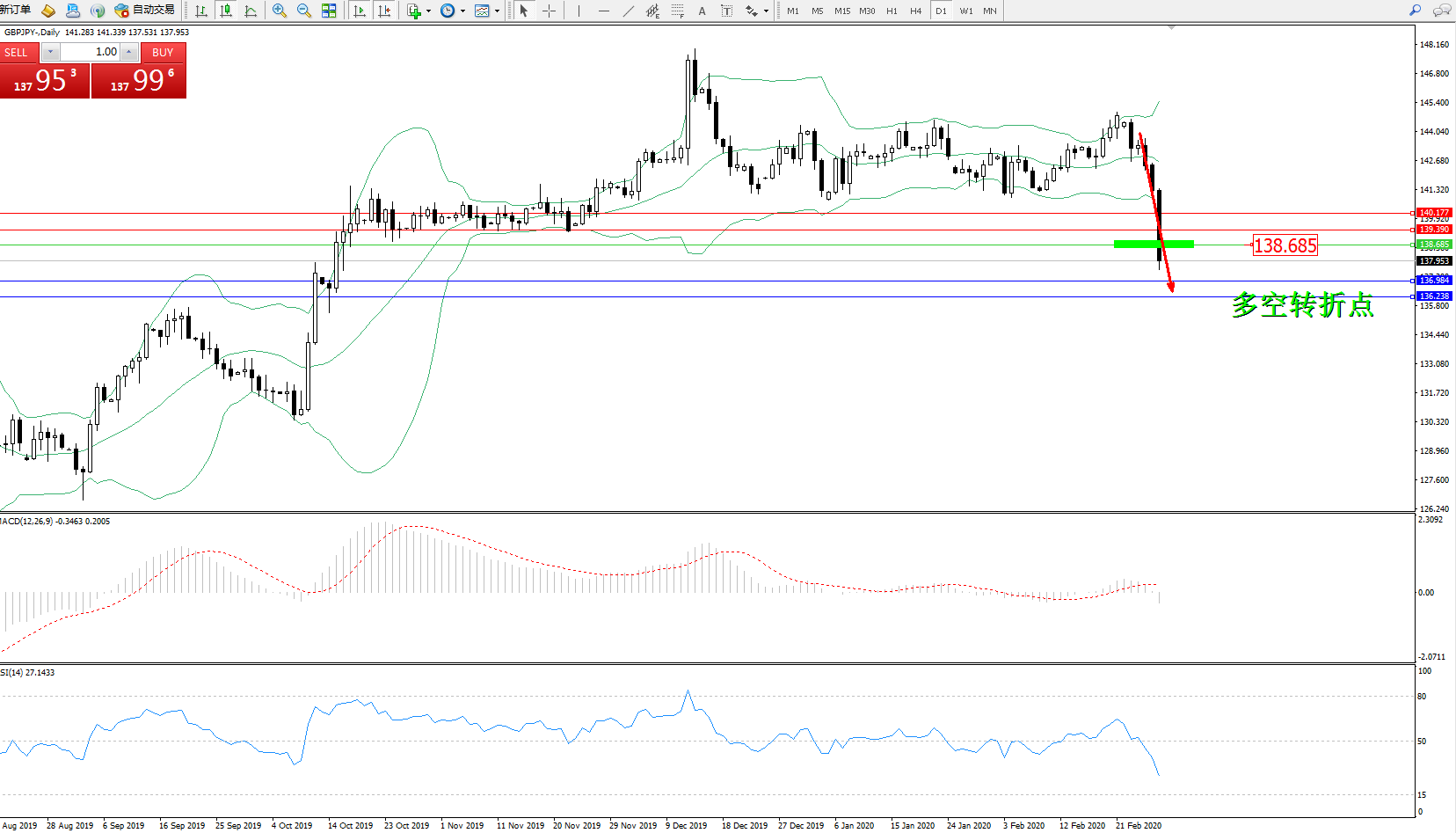 英镑兑日元现报138.55,跌1.90%;欧盟授权其谈判代表寻求与英国保持基本不变的贸易关系,而英国首相约翰逊则坚称,英国脱欧的部分动机是经济和政治独立。这样看来,双方的谈判可能不会一帆风顺。值得注意的是,公共卫生安全事件已经蔓延到欧洲,其中意大利的情况相对更严重一点。奥地利和西班牙也被波及,而日本、韩国、伊朗和其他国家的情况也有所恶化。投资者现在必须面对该事件扰乱欧洲经济的前景。
