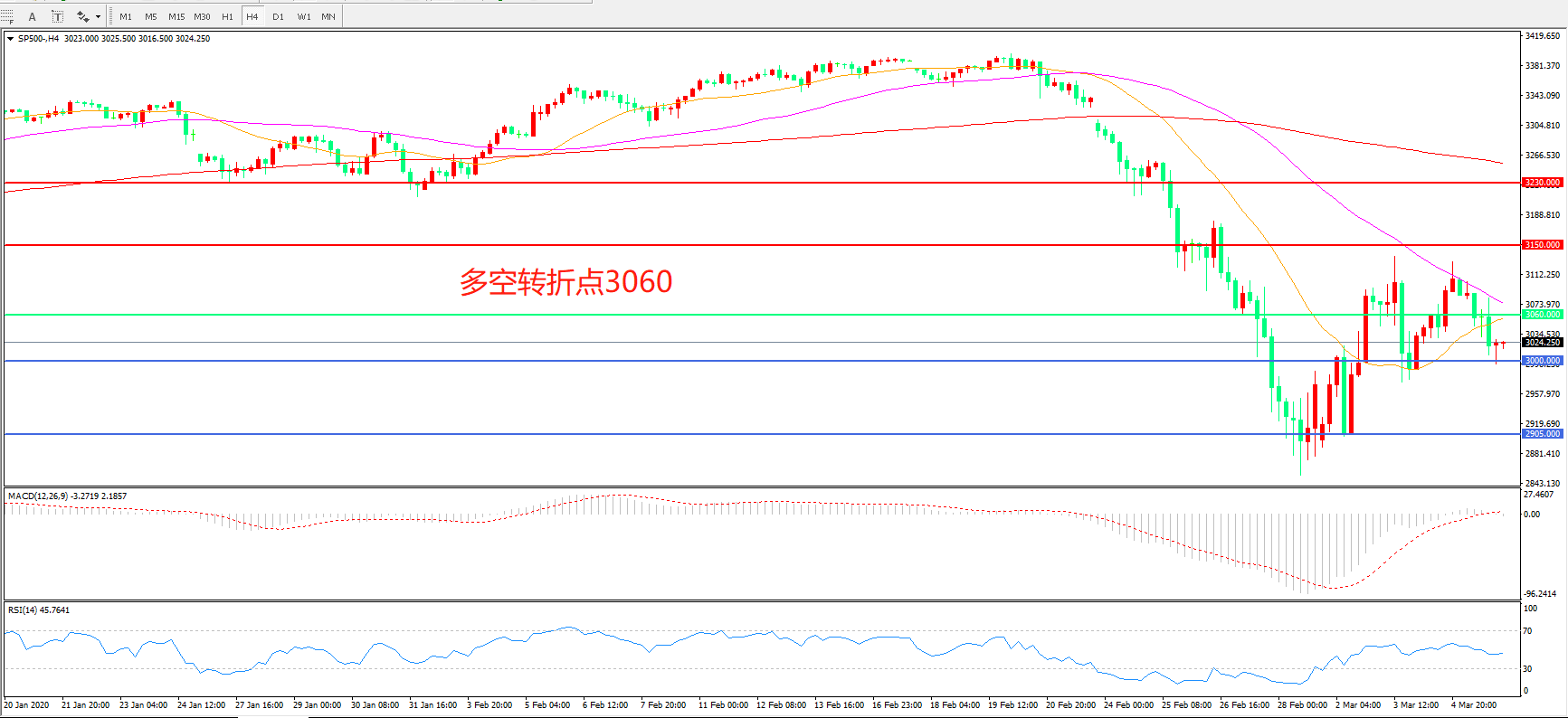 备选策略:在3060.00之下看跌,目标3000.00         2905.00