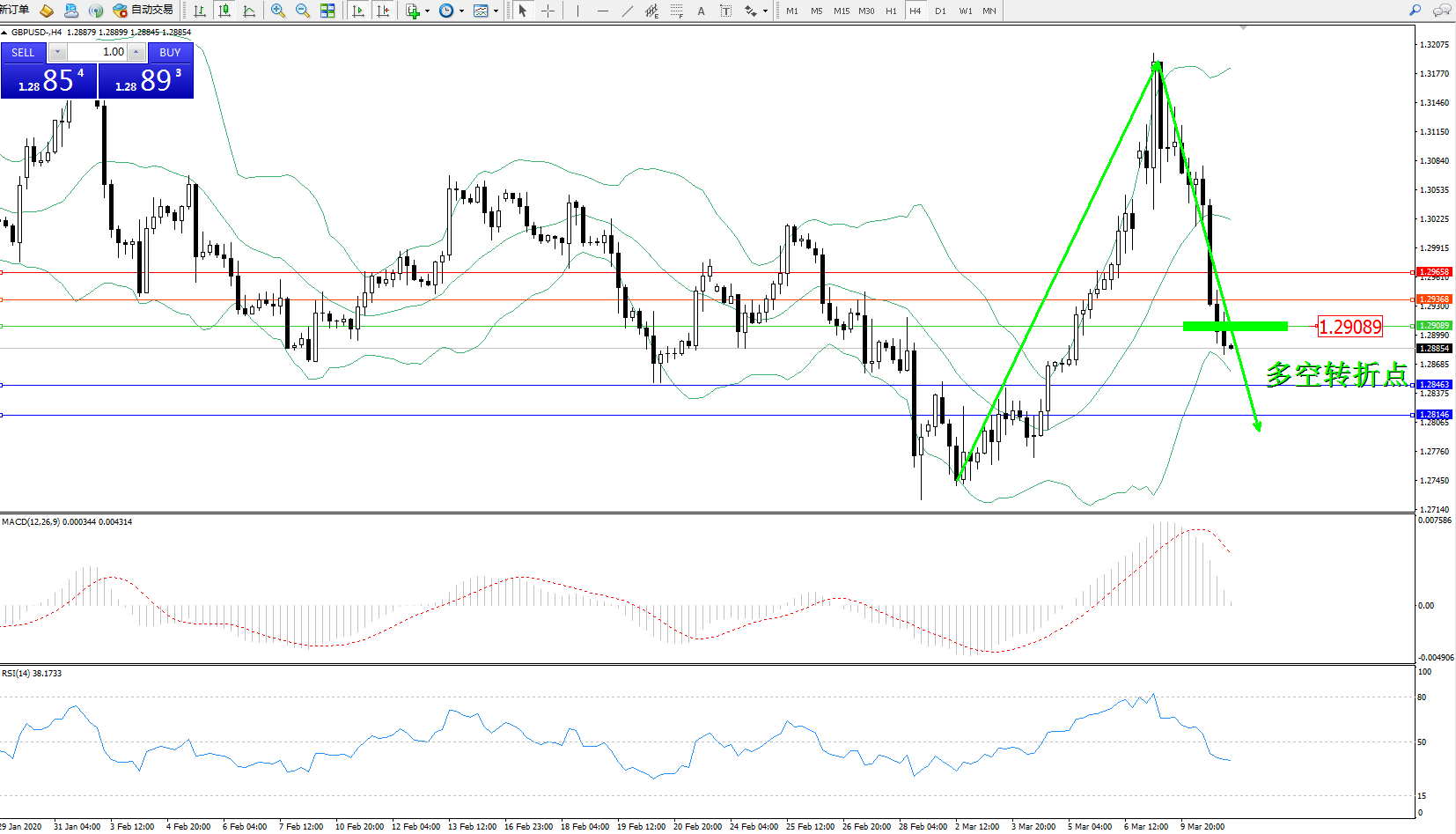 交易策略:1.29089下方看跌,目标1.28463、1.28146