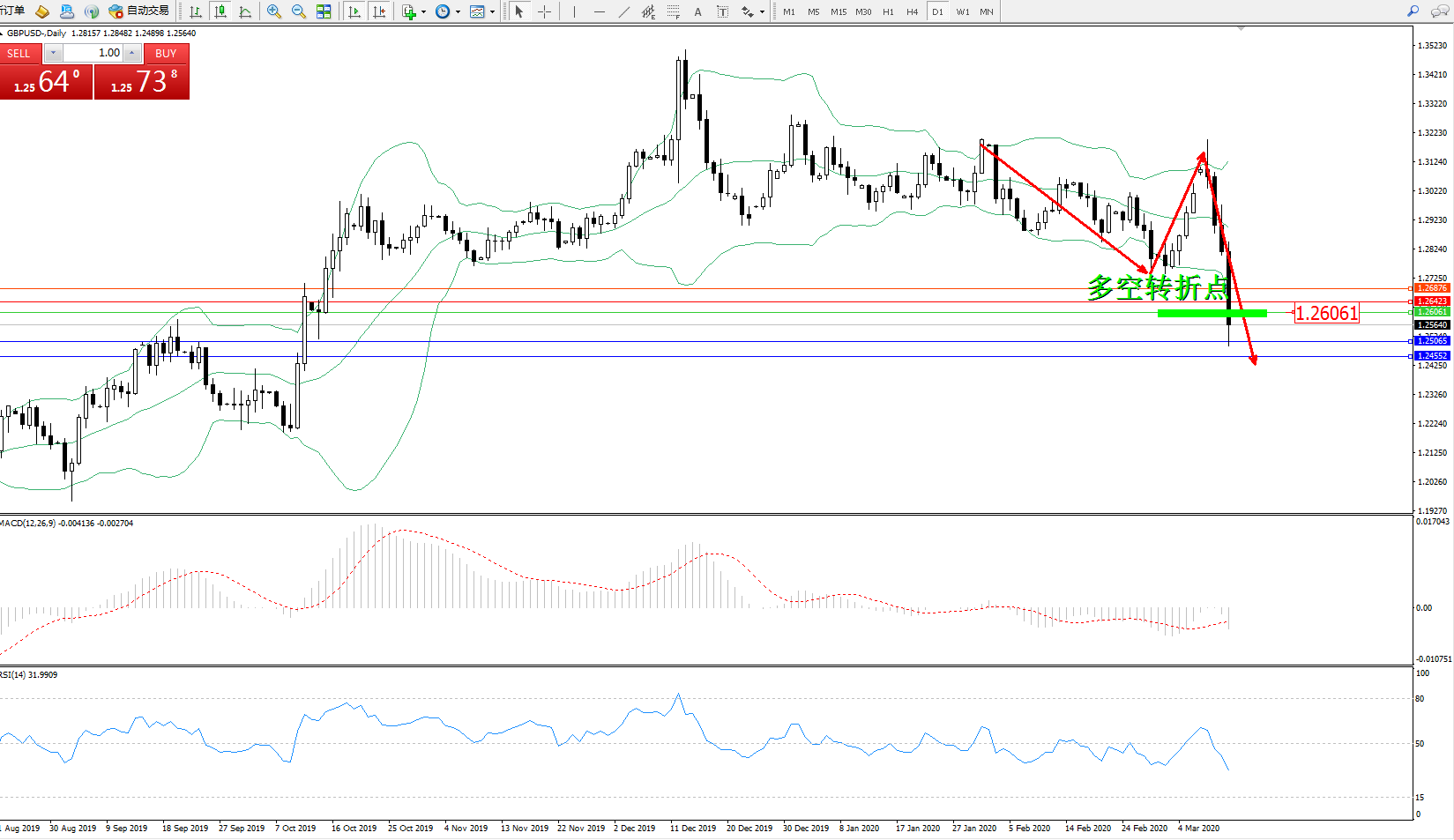 交易策略:1.26061下方看跌,目标1.250651.24552