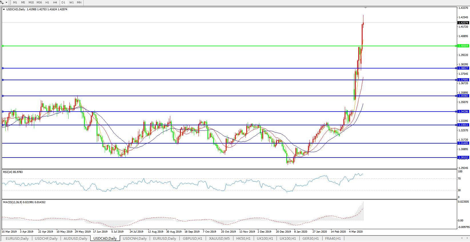 美元兑加元USDCAD 日线图: