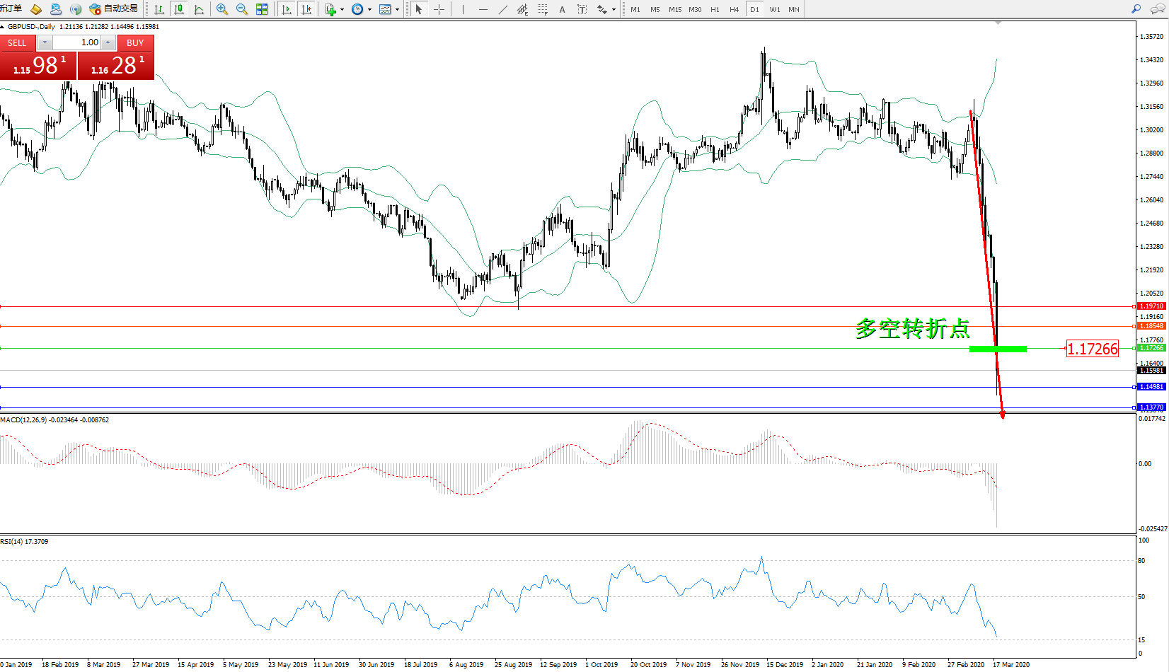交易策略:1.17266下方看跌,目标1.14981、1.13770