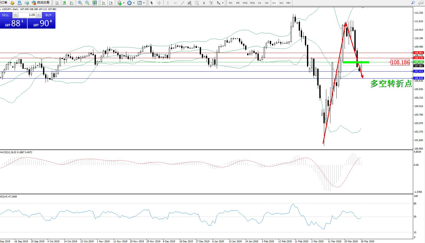 美元兑日元下跌0.17%107.76;日本企业在财年末汇回海外资金以及主权需求支撑了日元;日本今天将公布2月份失业率、工业产值和零售销售等数据。,日本央行购买了2016亿日元的ETF,为第四次触及最大购买纪录,同时美元再度在担忧情绪升温的背景下走高,而日本执政党(自民党)提议制订规模达60万亿日元的刺激计划,其中包括政府直接支出约20万亿日元,日本自民党政策负责人Kishida表示想要着眼于分几批推出价值100万亿日元的刺激计划,日本进一步刺激行动的预期升温也令日元承压。