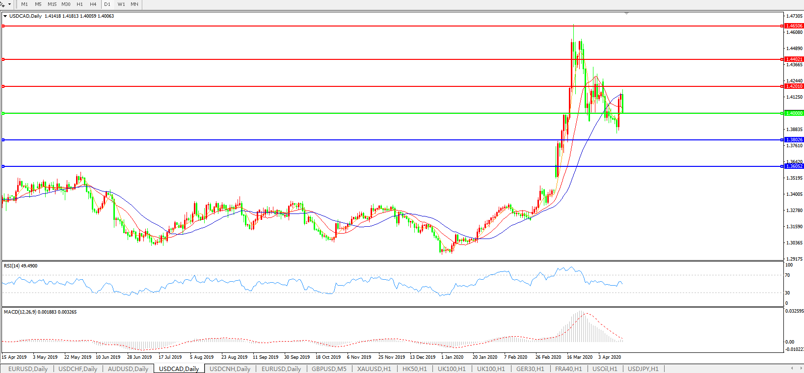 交易策略: 在1.4000之上,看涨,目标价位为1.4200、1.4400