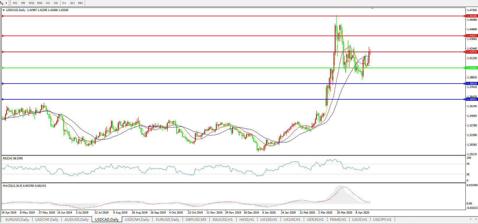 交易策略: 在1.4000之上,看涨,目标价位为1.4200、1.4400