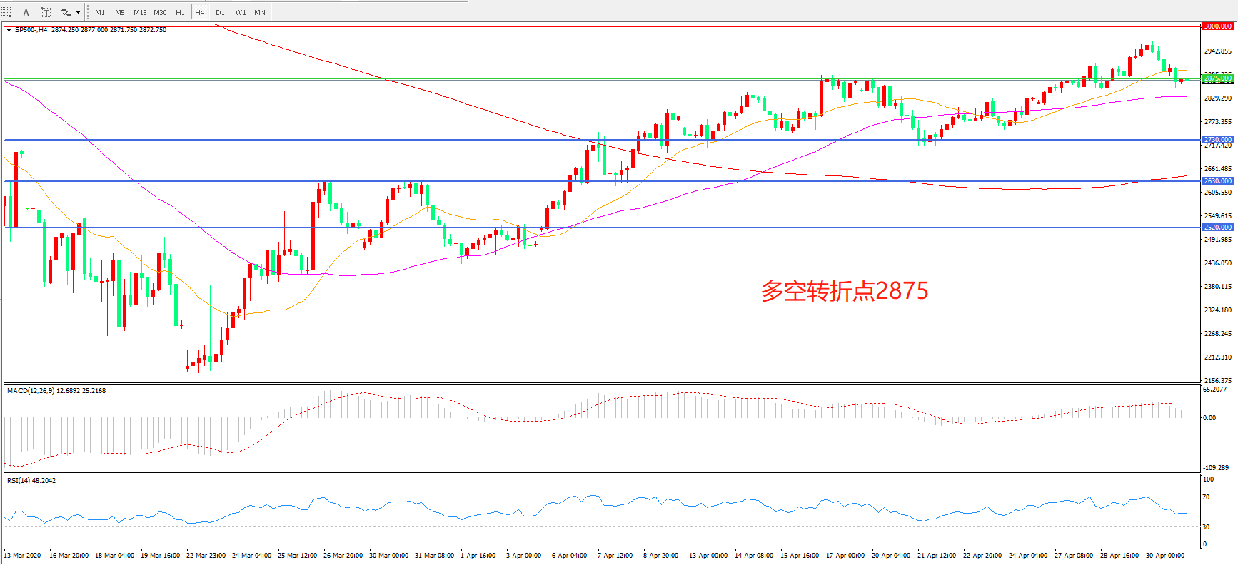 周四(4月30日),糟糕的经济数据和施压美股,标普500自七周高位回落,收报2871点。但4月整月上涨12.7%,创下1987年以来最佳月度表现。盘前公布的初请失业金人数超过380万,较市场预期多30万,当周续请失业救济人数为1799.2万,再创纪录新高,近六周累计申请人数突破3000万,约占整体劳动力的20%。