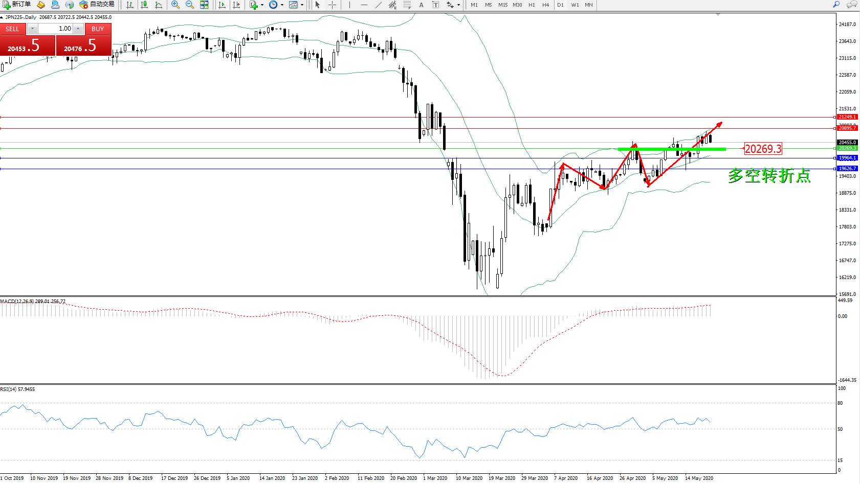 日经225指数5月21日(周四)收盘下跌24.15点,跌幅0.12%,报20571.00点。日本5月工厂活动加速下滑,因产出和订单减少,凸显出新冠疫情给制造业带来的压力越来越大。5月经季节调整的制造业采购经理人指数(PMI)初值跌到38.4,创2009年3月以来最低。4月终值为41.9。整体指数下滑受产出、新订单和积压工作大幅下滑拖累,这三项分类指数均创十多年来的最大降幅;尽管服务业活动下降速度略微放缓,但商品需求大减最终还是拖累了制造业,这份暗淡的数据中也有亮点,即就业形势指标持平。制造业指数已连续第13个月低于50的荣枯分水岭。新冠疫情对全球供应链产生巨大影响,导致日本等仰赖贸易的国家陷入困境。本周出炉的国内生产总值(GDP)数据显示,日本经济四年半来首次陷入衰退;随着新冠病毒危机给企业和消费者带来沉重打击,日本料将陷入战后最严重的衰退。