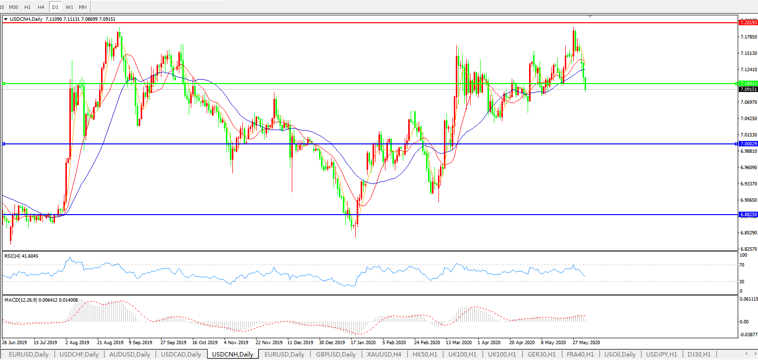 美元兑人民币USDCNH 日线图: