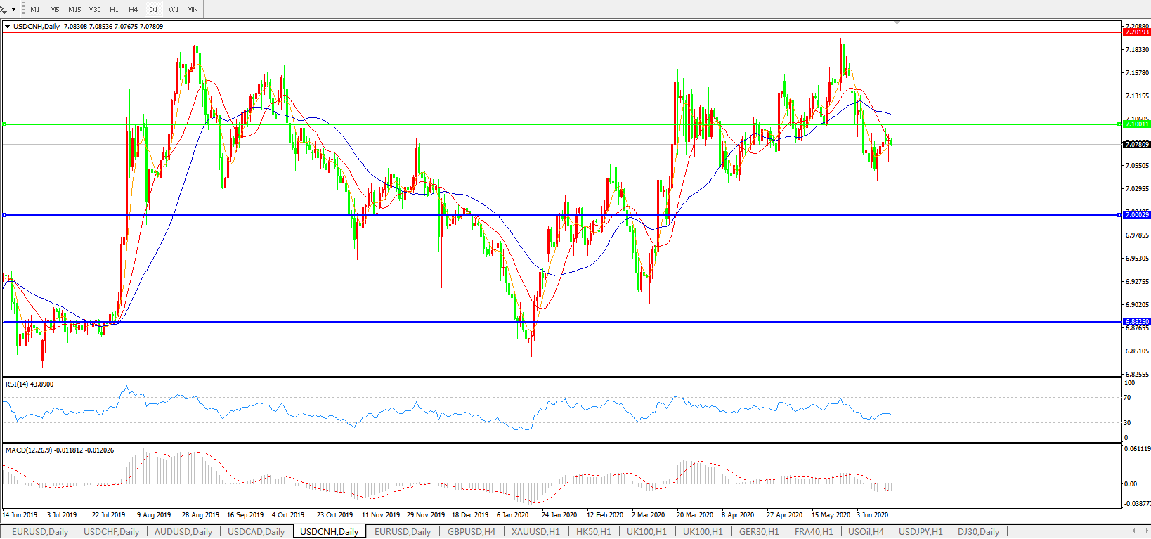 交易策略: 在7.1000之下,看跌,目标价位为7.0000,然后为6.8820。