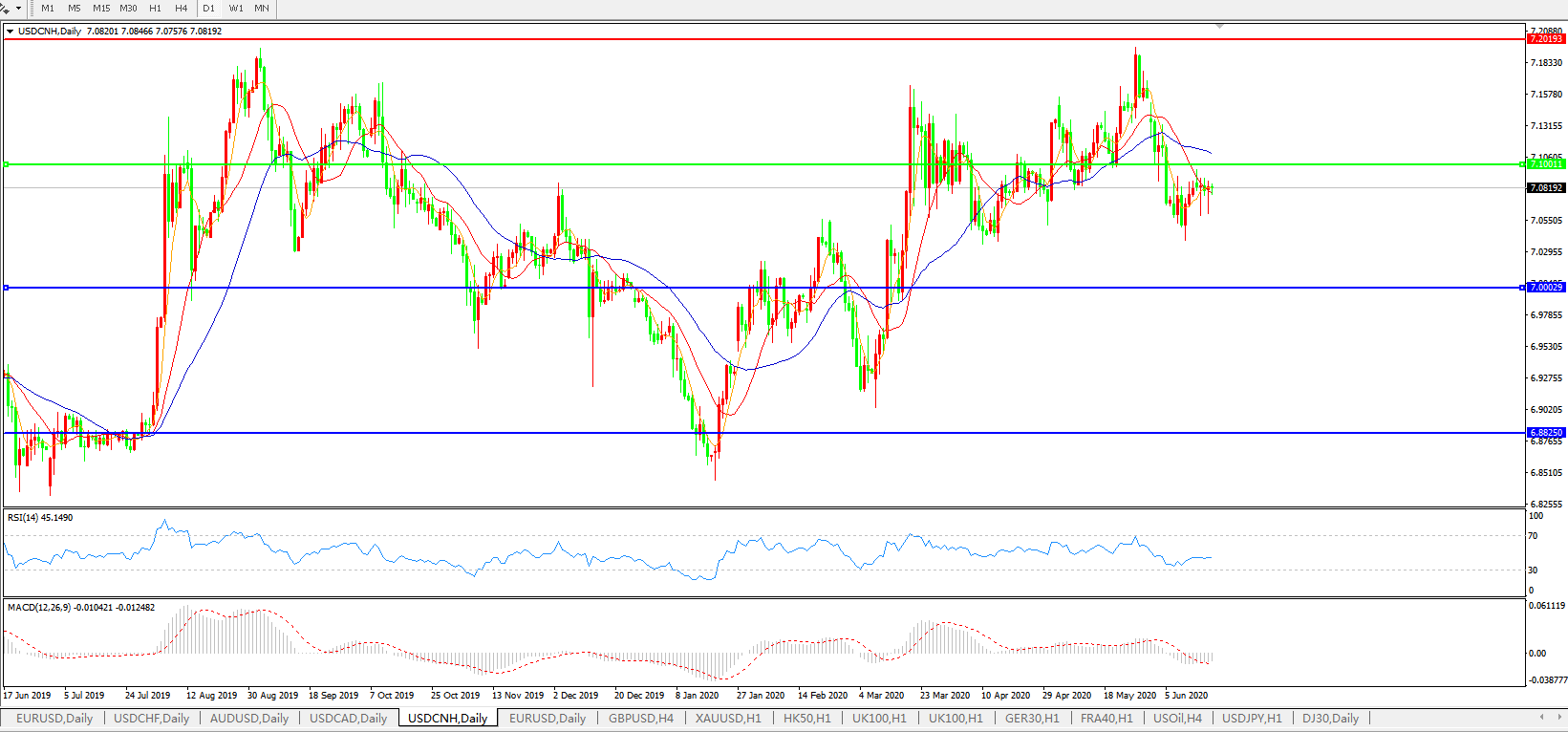 美元兑人民币USDCNH 日线图: