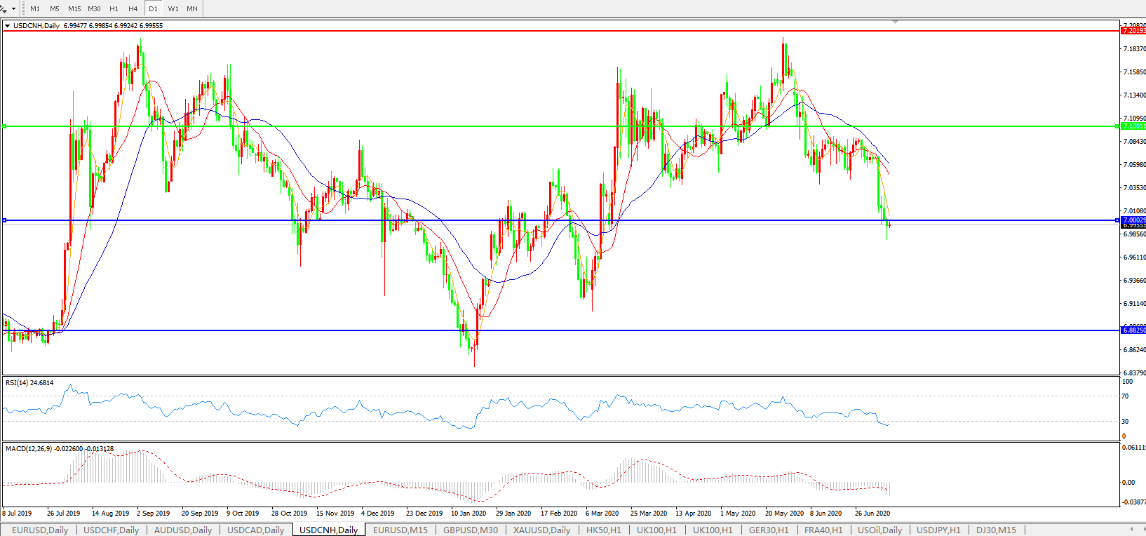 交易策略: 在7.1000之下,看跌,目标价位为7.0000,然后为6.8820。