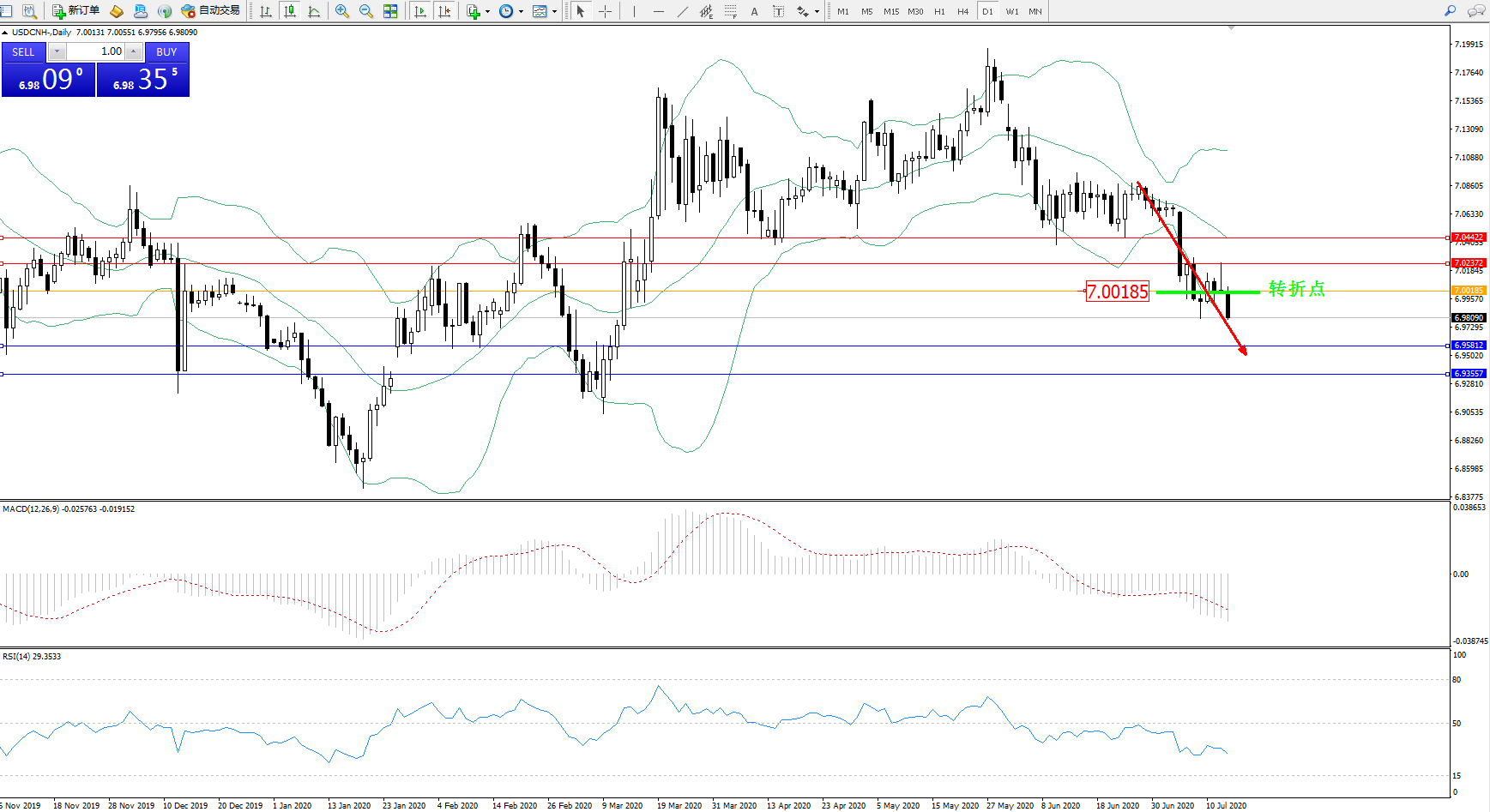 交易策略:7.00185下方看跌,目标6.958126.93557
