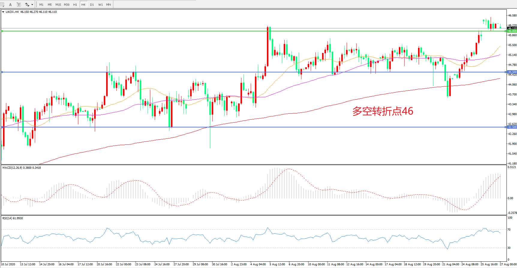 交易策略:  在46.00之上看涨,目标48.00      50.00