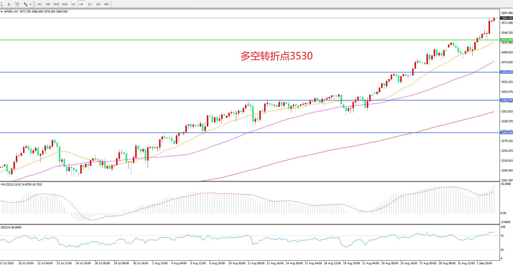备选策略:在3530.00之下看跌,目标3450.00          3380.00