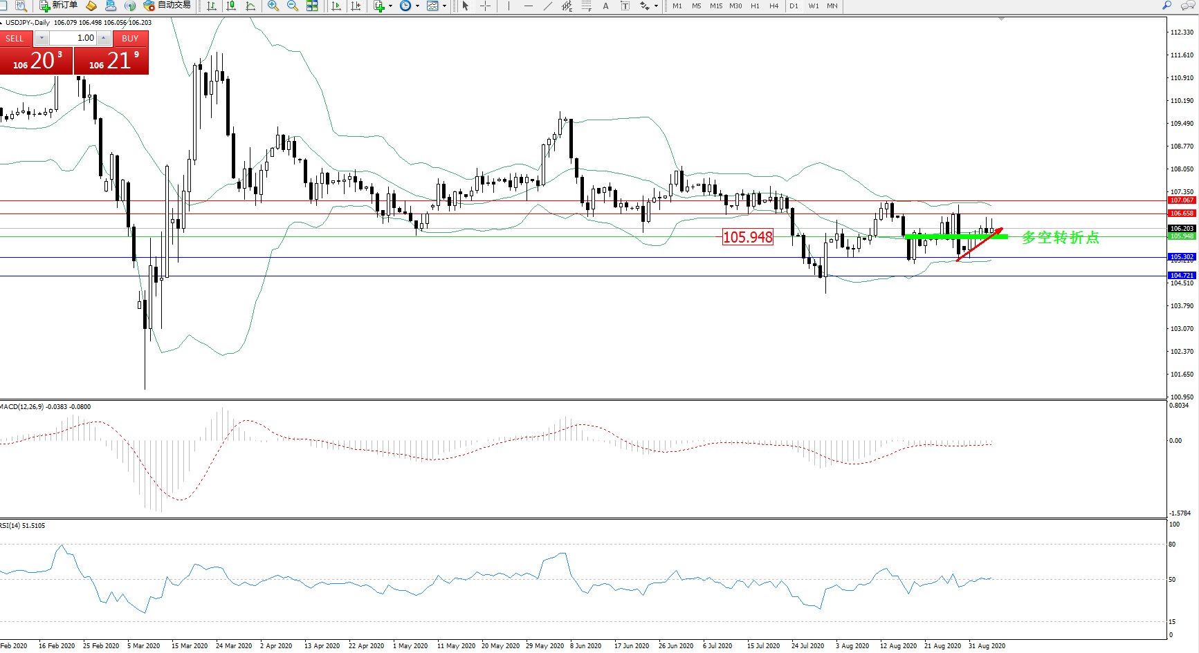 技术点评:长时间维持在布林带指标通道内宽幅震荡平移走势中,多空动力均处于焦灼状态,低位多头动力弱势缓慢上移破中轨进入中上轨区间整理,布林带指标呈收口平移走势良好,但整体波幅空间有逐渐收窄迹象,关注中轨附近转折点,MACD指标处于0轴线附近弱势徘徊中,RSI指标处于50均衡线附近持续整理平移中,