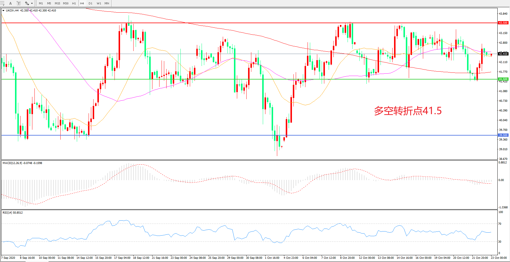 交易策略:  在41.50之上看涨,目标43.50      46.50