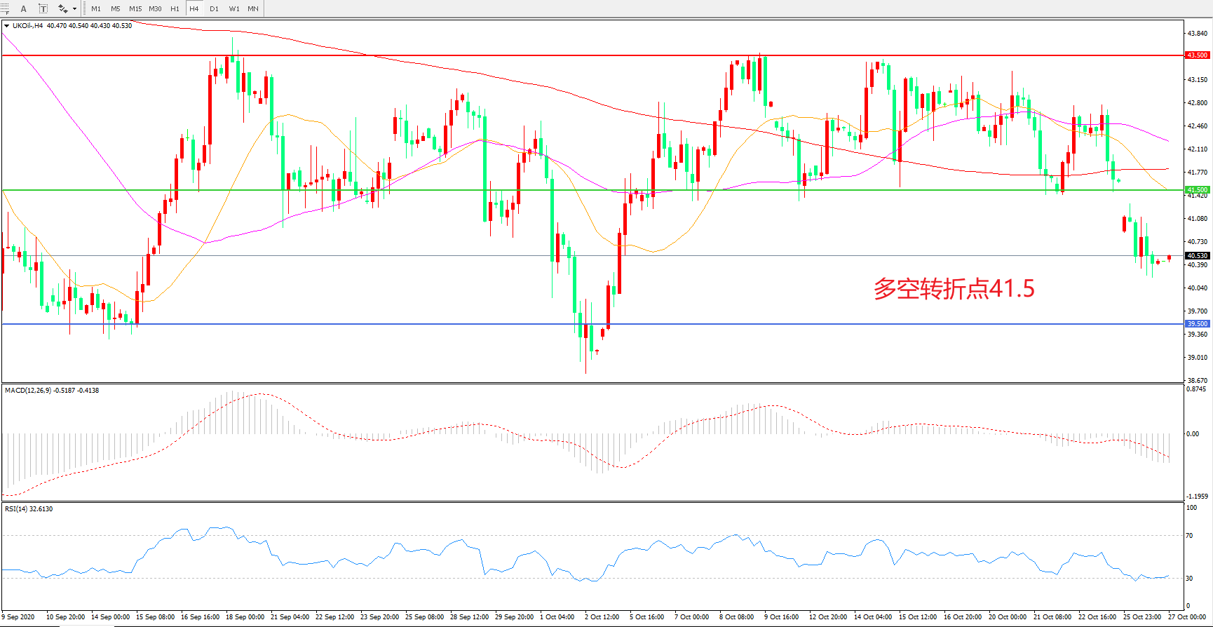 交易策略: 在41.50之下看跌,目标39.50 37.00