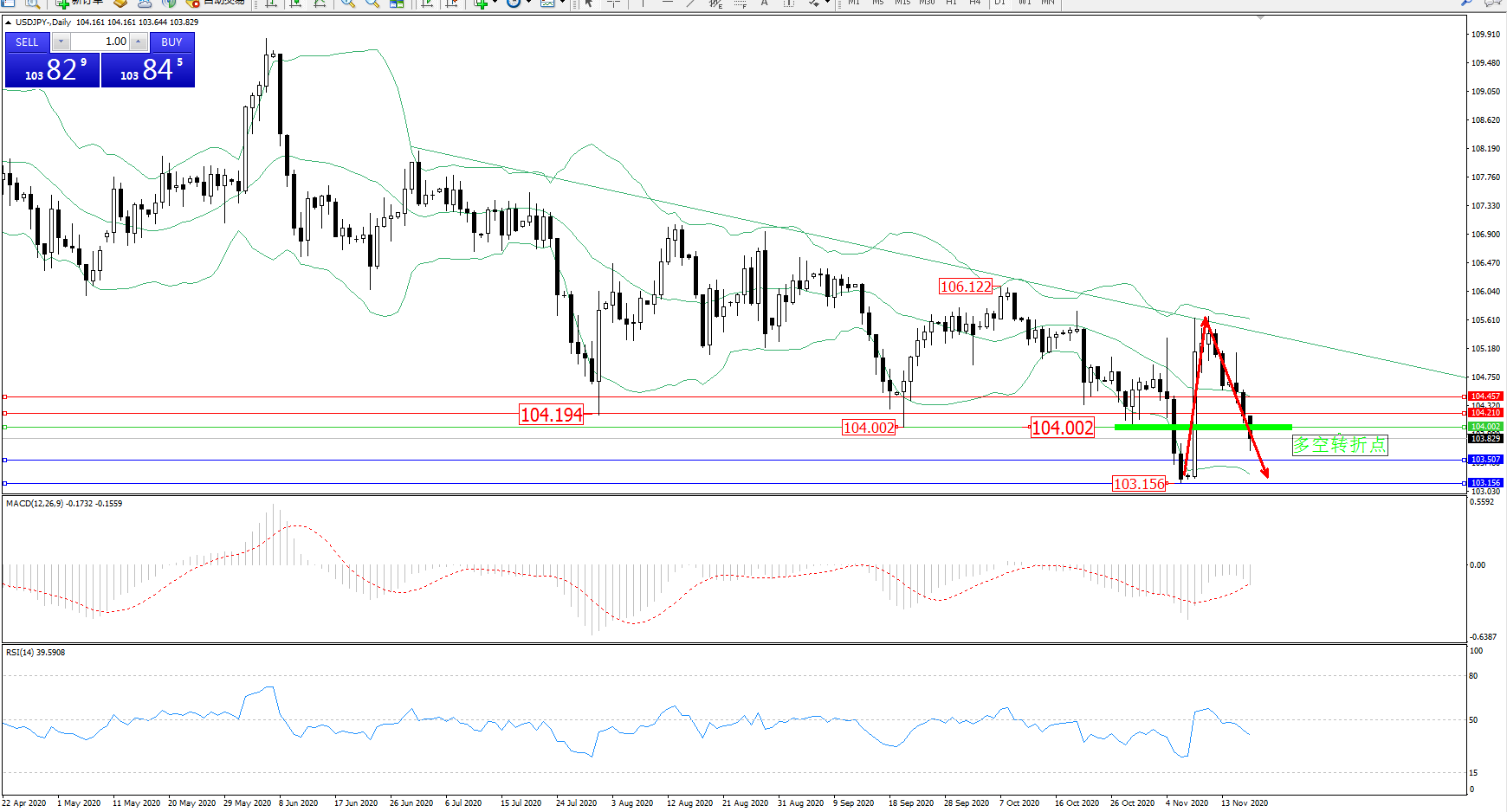 交易策略:104.002下方看跌,目标103.507、103.156